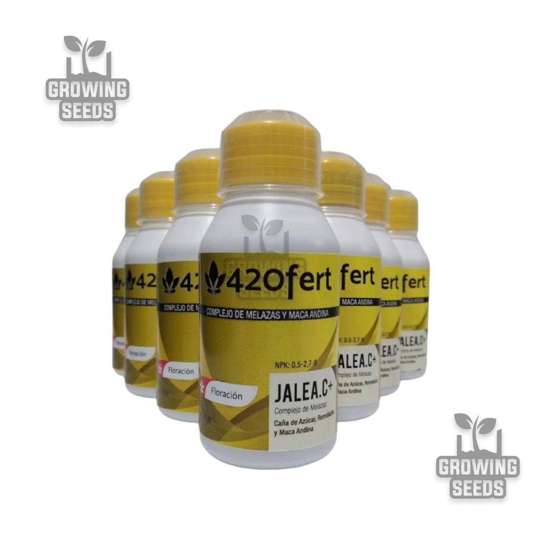 Melaza de caña de azúcar y remolacha Fertilizante especifico para mejorar la calidad de la floración Jalea.C es un compuesto orgánico realizado a base de melaza de caña negra y remolacha. Posee un alto contenido en Potasio y azúcares de rápida asimilación que irán directamente a las flores de tus plantas. Además, dispone de cantidades significativas de Calcio, Magnesio, Sodio, Cloro y micronutrientes, especialmente Boro, este tiene un rol muy importante ya que es el responsable de la traslación del azúcar y carbohidratos hacia el fruto. – Beneficios – Aumenta el volumen y peso de las flores. Genera mayor cantidad de Resina. Potencia el sabor final de las flores. Promueve el crecimiento radicular de la planta. Mejora la estructura del suelo. Es un excelente anti-shok – Aplicación – En el agua de riego, diluir una cucharada sopera de JaleaC. Regar naturalmente la planta. Repitir el proceso una vez a la semana. Utilizar el producto desde el inicio de la floración hasta la cosecha.